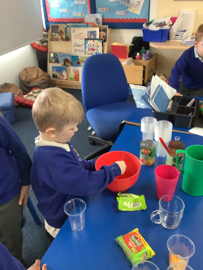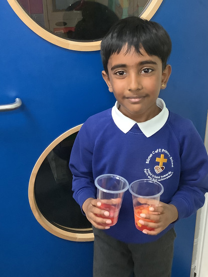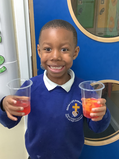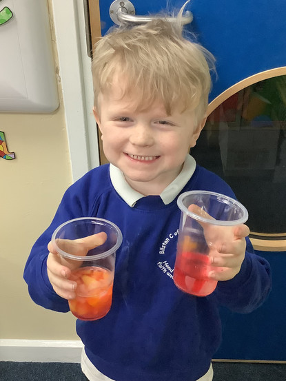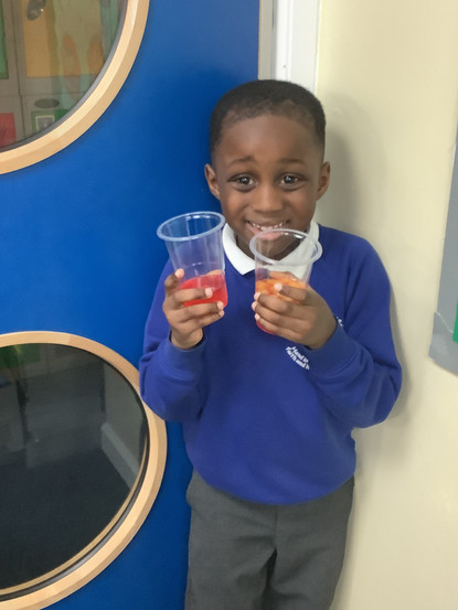 Year 1 had a fantastic day conducting lots of fun experiments. The children were focussing on the title of 'Time'. They began by making some jelly, one on its own and one with fruit in it. The children then timed these to see which type of jelly would set the fastest. They then explored bath bombs and timed how long they took to dissolve in different temperatures (cold, warm and hot). The children made a prediction and carried out the experiment to find out the result - the hot water worked the fastest! Finally to link with our art topic, the children conducted a walking rainbow experiment. The children used cups with the primary colours mixed with water and put empty cups between these with paper towels between each cup. The children then timed the experiment to find out how long it would take the primary colour water to climb the paper towels and mix to create secondary colours. The children had a fantastic day becoming Scientists and carrying out lots of fun experiments.