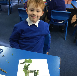 The children explored creativity using natural materials to design and create their own animal collages. They worked with great focus and quickly discovered how challenging—and sometimes unstable—it can be to build with items from nature.